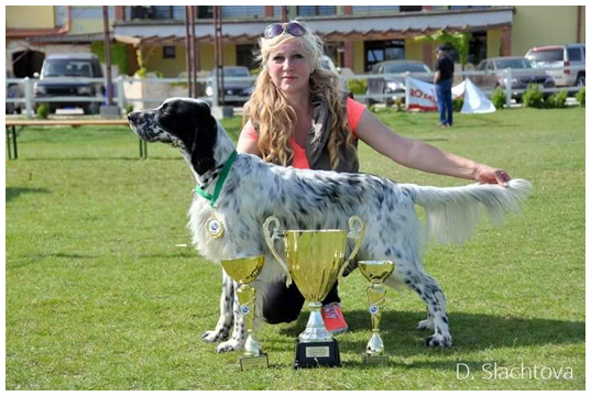 Khyannes Isac 'Isac' - CAC, CACIB, BOS Alma Ranczo Mysliwego 'Alma' - CAC, CACIB, BOB Alma is INTERCHAMPION CIE with this result! __________________________________________________ Field - water exam (VMV) in Kajászó, Hungary 29 May 2016 Khyannes Haute Couture 'Ruby' passed the Field - water exam in II. prize. Due to the extremely bad weather and plenty of rain we have had in the last 4 weeks before the exam, we were not able to practice enough so I am very happy with the results. With this result Ruby has also become INTERCHAMPION CIB. :-) My clever girl. ![]() ___________________________________________________ Kapuvar CAC, Hungary - 22 May 2016 Khyannes Nymphe 'Chanel' - Junior Winner, Best Junior, BOB Congrats to the owner, Melinda Szabó! ___________________________________________________ United Club Dogshow of Slovakia pointers and setters club and Special show of FCI group VII 22 May 2016 Khyannes Buckshot 'Bucky' - Exc.1, CAJC, Best Junior, BOB, Junior Club Winner and English pointing dogs Best in Show - Winner of Club Challenge Cup Congrats to the owner, Iveta Krucayová! |
